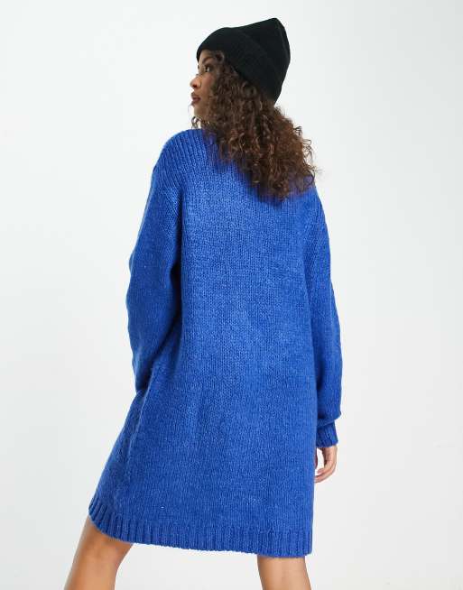 Jdy High Neck Cable Knit Sweater Dress In Bright Blue Asos